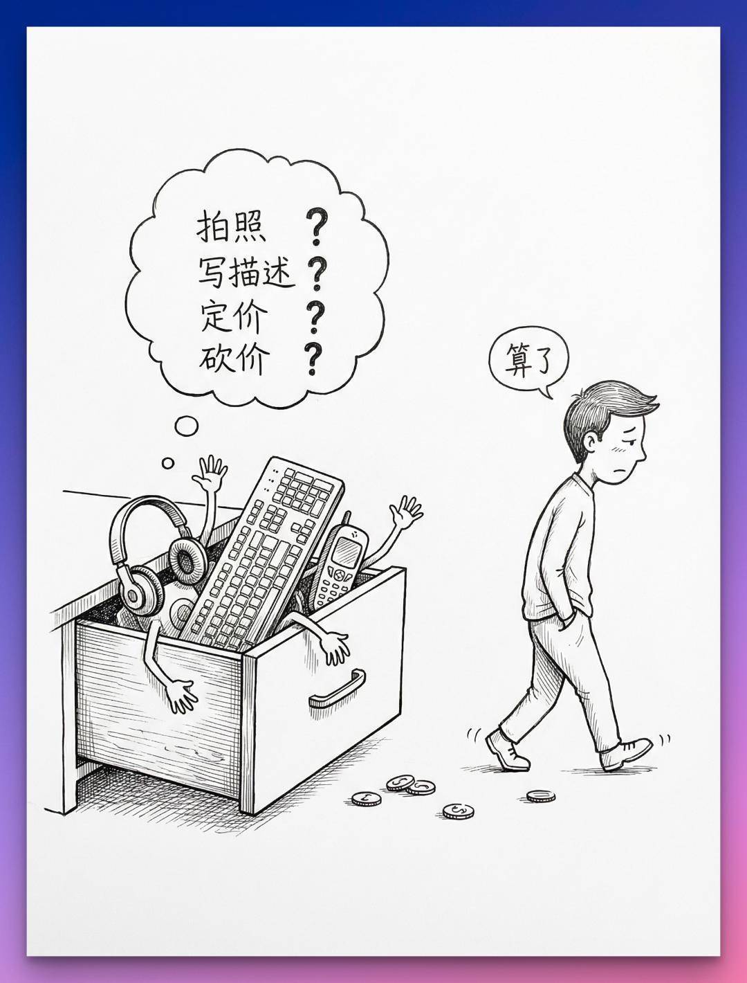 你也不是没想过出掉,但一想到自己要查型号、拍照片、写描述、定价格,上架之后还得跟人砍价扯皮,就已经累了。